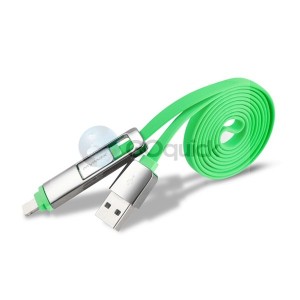 Univerzálny USB Dátový kábel 2in1 pre mobilné teleóny s konektorom micro USB ako aj lightening konektorom, MyMax Metalic ( zelený )
