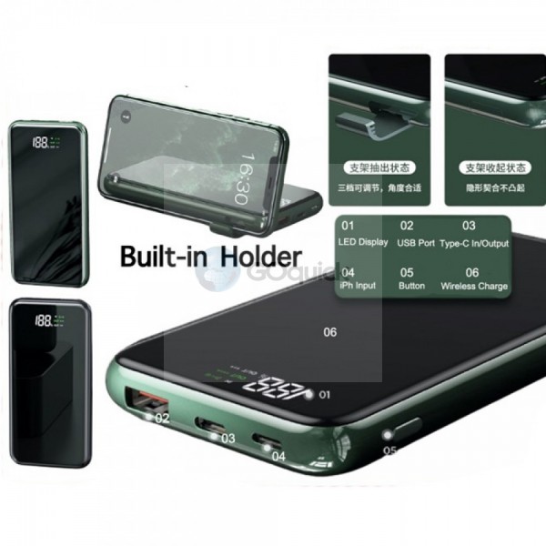 Bezdrôtový rýchlo nabíjací Power Bank so zabudovaným stojanom a kapacitou 10000mAh je ideálny pomocník pre nabitie inteligentného telefónu, prípadne iného zariadenia kdekoľvek na cestách keď ste mimo domu a nemáte prístup k elektrickej sieti.